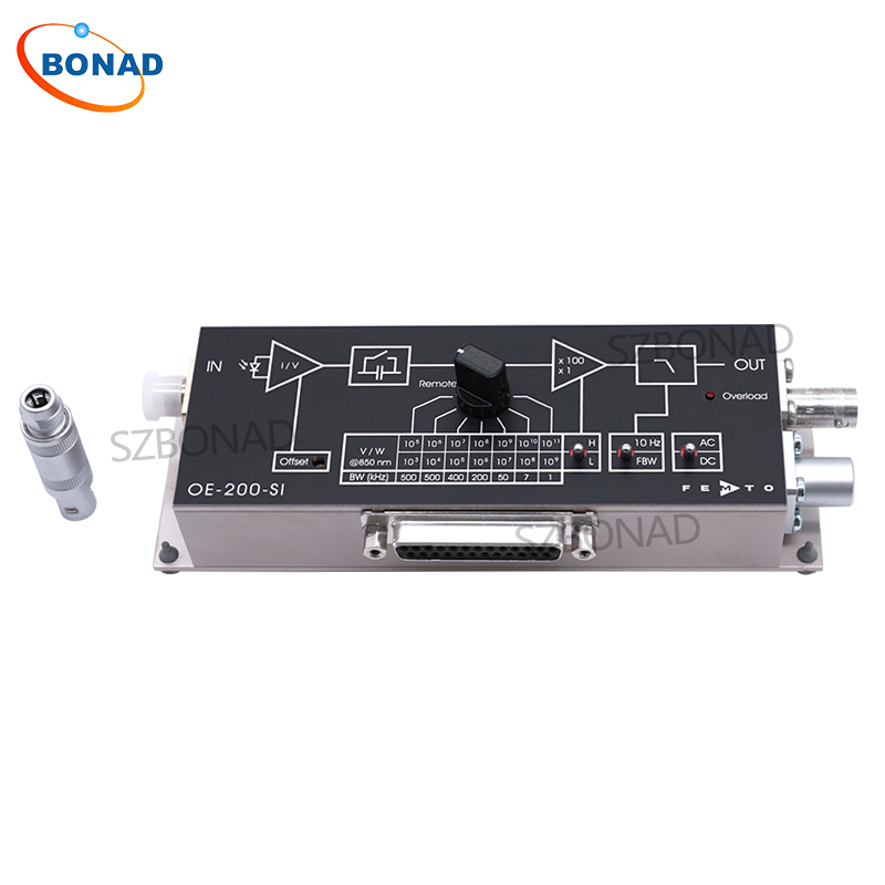 OE-200的高精确度和低漂移保证了可重复和一致的测量,在*大增益调整值也一样。光纤光纤输入的所有机型都具有可靠和准确的结果光学校准。因此OE-200也可以用作高带宽达 500 千赫和宽动态范围高达 100 分贝的精确和快速功率计。