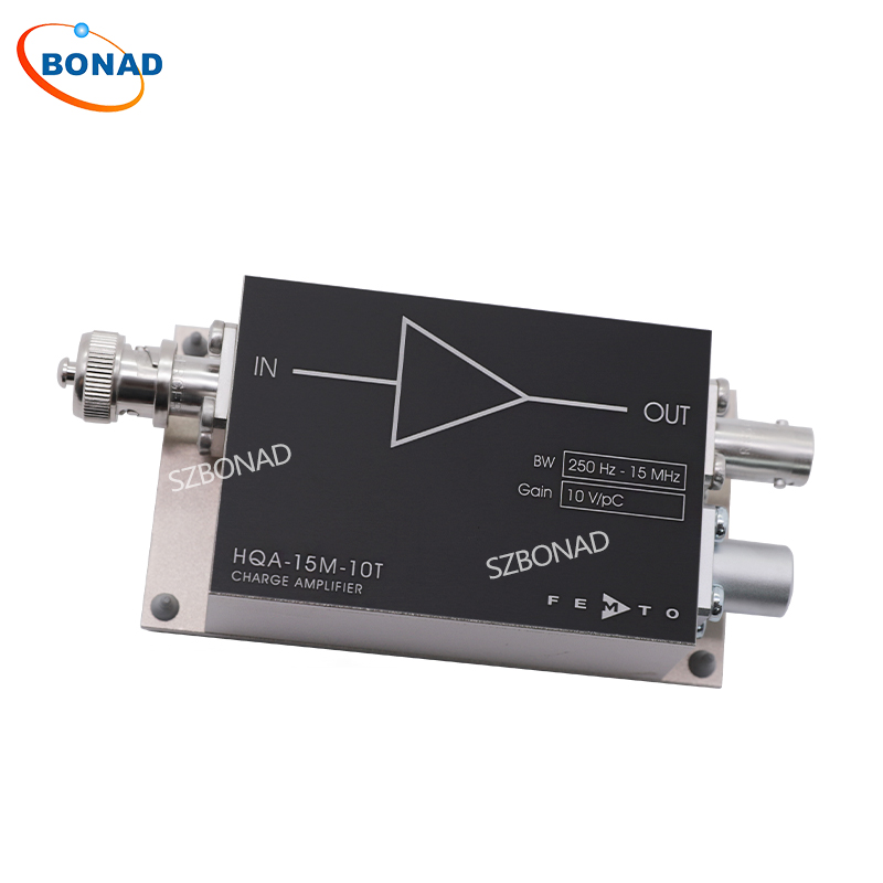 HQA-15M-10T 旨在捕获微型音叉产生的电荷信号。它也是压电探测器的理想选择,例如用于测量超声波振动的探测器。与传统的电流电压转换器配置相比,HQA-15M-10T 电荷放大器通常可将噪声降低一个数量。