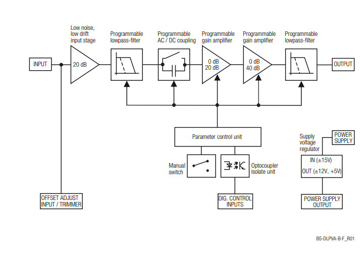 DLPVA-101-B 电压放大器是可变增益电压放大器,专为快速放大小电压信号而设计。其操作基本一目了然。如有疑问,请查阅本文档或联系我们。