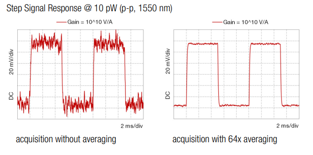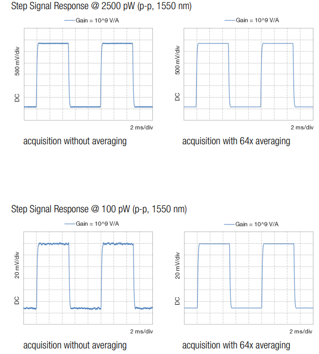 1.1 x 10 ^10 V/W(@ 1580 nm,增益 10^ 10 V/A)NEP(@ 100 Hz) 9 fW/√Hz(@ 900 nm) 10 fW/√Hz(@ 1580 nm) 输出电压:*大+10V。