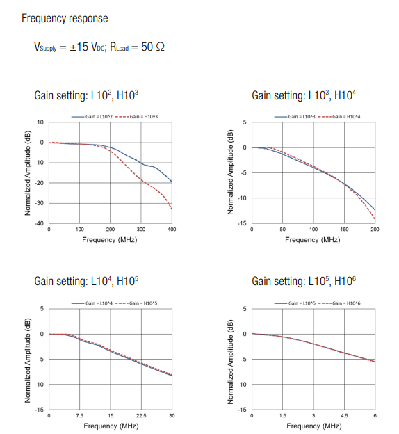 ● 可变(可切换)变压器阻抗(增益)10^2至 10^8 V/A