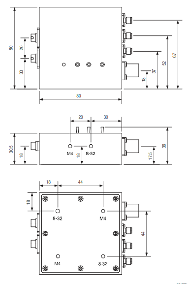 ● UNC 8-32 and M4 tapped holes for mounting on standard posts with metric and imperial thread