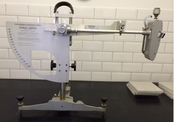 Munro Stanley防滑测试仪(又称英国摆锤测试仪)基于伊佐德(Izod)原理。操作时,一个已知质量的摆锤绕垂直主轴旋转。摆锤头装有具有特定硬度和弹性的橡胶滑块。从水平位置释放后,摆锤头以恒定速度撞击测试表面。摆锤撞击表面后行进的距离由样品表面的摩擦阻力决定。摆锤测试值 (PTV) 对应于摩擦系数乘以 100,可直接从清晰刻度上读取。